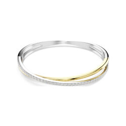 This twisting Hyperbola bangle is crafted with unmistakable Swarovski savoir-faire. The two overlapping bands are presented in a mix of gold-tone and rhodium plating, with round Swarovski Zirconia placed in a prong setting. An elegant way to inject intrigue into any outfit.