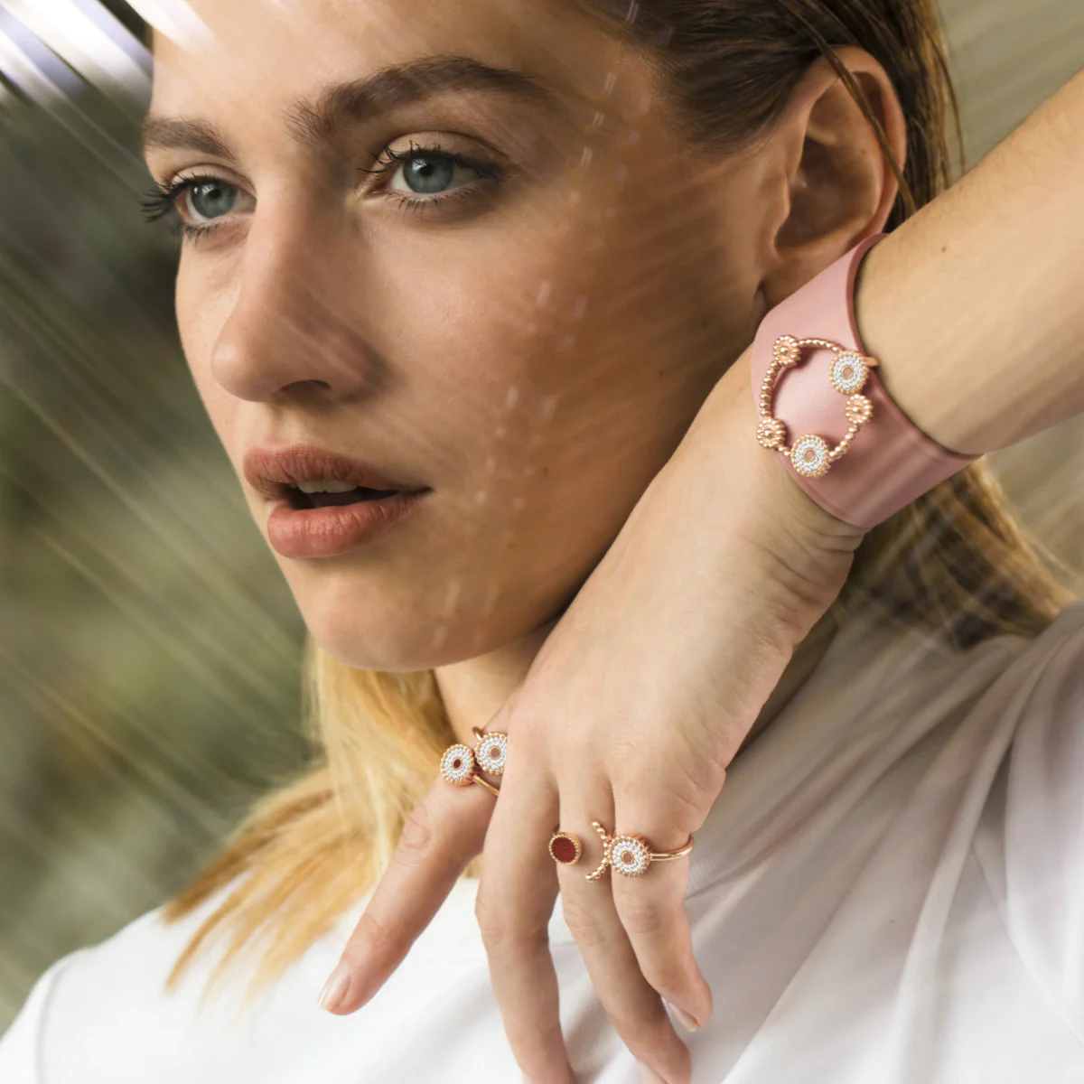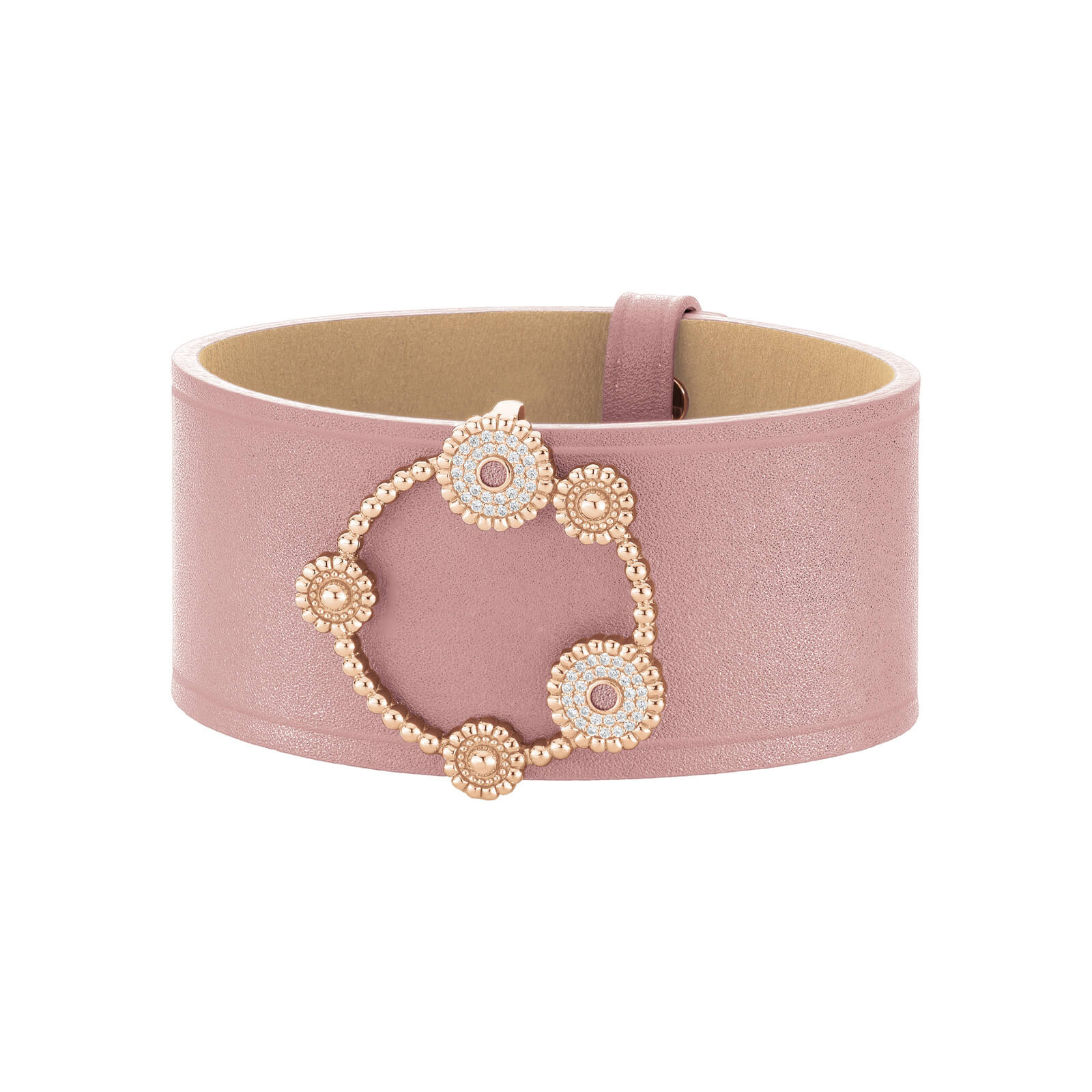 Cuff BOURGEON FLORAL Rose RO, 925 Silver, rose gold plated. Austrian crystals. Genuine Italian leather.